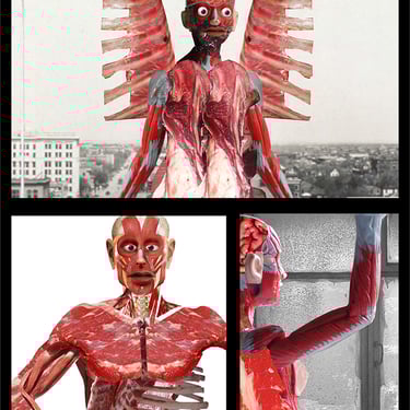 The book was inspired by the exhibition Bodies, which was popular in the 2000s in West Europe and the United States. It is assembled from cited images (pictures of meat, parts of human body) and words found from different sources on internet. The material is then constructed or arranged in verse (for text) and in illustrations (for images). Only the cover and a few sample pages are here included.