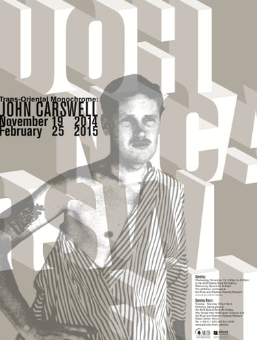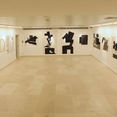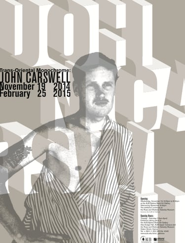 This exhibition familiarizes the public with a series of monochrome works produced by John Carswell: the art historian, artist, teacher, explorer, curator and scholar of Near, Middle, and Far Eastern art and culture. Carswell graduated in 1951 from the Royal College of Art in London, and instead of setting out to conquer the British art world, ruled at the time by local social realists, he embarked on a steamboat and entered the Middle East through the port of Beirut. For almost six decades now, John Carswell has been studying this region, following on the heels of his lifelong source of inspiration, the medieval Islamic explorer Ibn Battuta. Instead of tracing the routes of the sacred Hajj, however, Carswell has been closely observing the pilgrimage of artistic ideas, the circulation of cultural currents within and beyond an area that gave the world its earliest great civilizations. His interest in the art, culture and history of the Fertile Crescent has led him to various places and positions: from archaeological excavations in Turkey, Jordan, Syria, and Palestine, to teaching fine arts at the American University of Beirut, to following in the footsteps of the first Western explorers of Central Asia, to becoming the Curator of the Oriental Institute and then Director of the Smart Museum at the University of Chicago, and later moving back to London to become the Director of the Islamic and South Asian Department of Sotheby’s, London. His passion for the Orient has taken various forms: from art works, graphics and design for various political activist campaigns and scholarly treatises, to curating exhibitions or writing scholarly books and articles. Carswell has written on such topics as Chinese blue-and-white porcelain in the Near East; Armenian architecture in seventeenth-century Isfahan; Kütahya tiles and pottery in the Cathedral of St. James in Jerusalem; Islamic book binding and book making; Arab seafaring; Coptic tattoo designs; metalworking in the streets of Beirut; painting in the Islamic world; and the history of Lebanese painting—to mention only a few.
