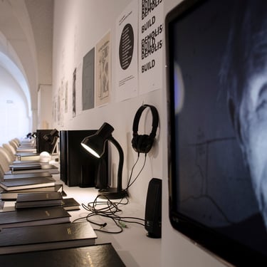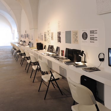 In addition, the visitor will find in the exhibition a Bookshelf that sets on display multiple instances of critical machines assembled by artists from different epochs and regions, compiled by the curator of the exhibition: from William Hogarth’s Analysis of Beauty (1753) to Wassily Kandinsky’s Point and Line to Plane (1926) and, within the Lebanese context, from Georges D. Corm’s Essai sur l'art et la civilisation de ce temps (1966) to Walid Raad’s Scratching on Things I Could Disavow. A History of Art in the Arab World (2011). The shelf hosts approximately one hundred books, magazines and printed and bound content from various websites, all edited, made or published by artists. These publications present a wide array of artistic methods and devices: from institutional critique to art historiography and archival research, and from various forms of political activism and artistic subversion to aesthetic and art critical speculations. All of these critical machines, which we purchased, requested from artists worldwide, or unearthed from various layers of the Web, will be offered to the AUB library after the completion of this project.