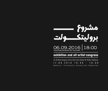 Mashrou' Proletkult is an exhibition and one-day congress. The exhibition is an invitation to every artist to display his or her artwork at AUB; the Mashrou’ Proletkult All-Artist-Congress offers every artist present at this event the opportunity to deliver a speech on a relevant topic of his or her choosing.
