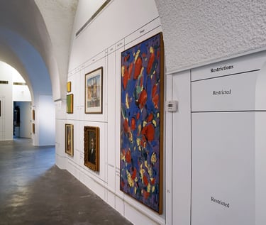 This exhibition puts on display artworks from the permanent collection of the American University of Beirut (AUB). It showcases some of its most valuable samples, arranging them in a manner that enables fragments of walls to also host artworks from other collecting institutions and individuals. We adopt the “open walls” method—commonly used in agriculture, to allow plants to extend and grow along a support structure—as the main principle of exhibition display. The Open Walls: AUB Art Collection exhibition aims to foster the cultivation of knowledge about art by filling in “gaps” and enabling a more comprehensive and flexible representation of the art historical narrative through an ever-changing open walls setup. Artworks from various collections, institutions, styles or ages are invited to be exhibited in close proximity to AUB's art collection. With this we draw attention to the imperative need for dialogue and collaboration between AUB and other local, regional, and global cultural institutions, collections, artists, and foundations on expanding knowledge about art.