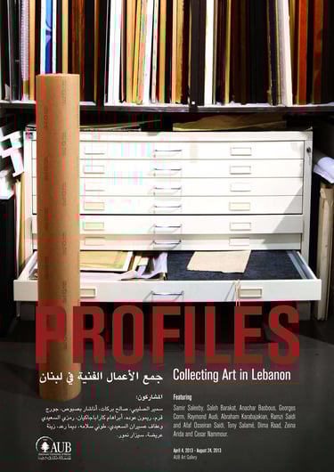 The American University of Beirut Art Gallery presents the exhibition Profiles: Collecting Art in Lebanon. The exhibition examines practices of art collecting and art patronage in contemporary Lebanon. On display are ten video interviews conducted with private art collectors and inheritors of collections including Saleh Barakat, Anachar Basbous, Georges Corm, Raymond Audi, Abraham Karabajakian, Ramzi Saidi and Afaf Osseiran Saidi and Tony Salamé. The art critic and publisher Cesar Nammour offers a historical perspective on the practice of art collecting, while Zeina Arida of the Arab Image Foundation speaks about collecting as an artistic strategy. Dima Raad, of the Ministry of Culture of Lebanon, also offers her perspective. On the lower floor of the gallery, the house of a Lebanese art collector—inspired by the home of the collector Samir Saleeby—has been reconstructed.