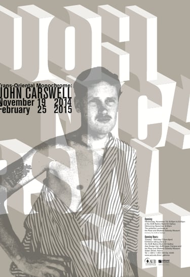 This exhibition familiarizes the public with a series of monochrome works produced by John Carswell: the art historian, artist, teacher, explorer, curator and scholar of Near, Middle, and Far Eastern art and culture. Carswell graduated in 1951 from the Royal College of Art in London, and instead of setting out to conquer the British art world, ruled at the time by local social realists, he embarked on a steamboat and entered the Middle East through the port of Beirut. For almost six decades now, John Carswell has been studying this region, following on the heels of his lifelong source of inspiration, the medieval Islamic explorer Ibn Battuta. Instead of tracing the routes of the sacred Hajj, however, Carswell has been closely observing the pilgrimage of artistic ideas, the circulation of cultural currents within and beyond an area that gave the world its earliest great civilizations. His interest in the art, culture and history of the Fertile Crescent has led him to various places and positions: from archaeological excavations in Turkey, Jordan, Syria, and Palestine, to teaching fine arts at the American University of Beirut, to following in the footsteps of the first Western explorers of Central Asia, to becoming the Curator of the Oriental Institute and then Director of the Smart Museum at the University of Chicago, and later moving back to London to become the Director of the Islamic and South Asian Department of Sotheby’s, London.