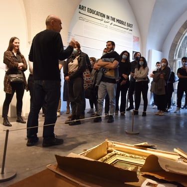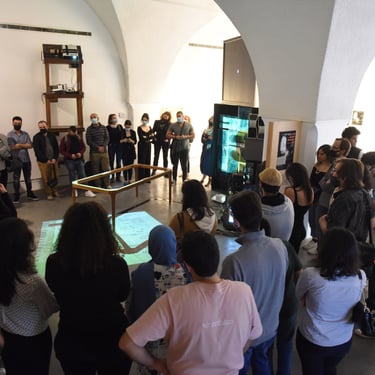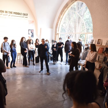 “Image, digitalization and transmediality: Emile Hannouche’s collection at USEK Department of Communication (Plateau 2)” continues with Miha Vipotnik's pedagogical and other activities at the Department of Communication at the Holy Spirit University of Kaslik (USEK). The project is informed by Vipotnik's approach to art education that he carries out at USEK as well as in his extra-curriculum exhibitions that are often collaborations between Lebanese and Slovene artists and curators. The approach reflects Vipotnik's thinking about the image, technology, media, and the document, which is overall characteristic of his transterdisciplinary and intermedia artistic practice. The starting point of the present exhibition is Emile Hannouche’s art collection. Vipotnik sees Hannouche’s collection in terms of a starting point for future development and extension of the Department of Communication into a contemporary interdisciplinary and transmedia education art department at USEK. The exhibition builds on a series of projects developed between USEK (Kaslik, Lebanon) and Pekarna Magdalenske mreže (Maribor, Slovenia). The multi-media exhibition does not approach Hannouche’s collection from a scholarly art-historical point of view. Rather, we start with the possible ways of integrating Hannouche’s collection into the existing (film/video) format of art education at USEK. The processes include digitalization (making the inventory of the collection) and using artworks from the collection to participate in various cultural projects in Lebanon and abroad. By setting this exhibition with Vipotnik’s students, we were, therefore, interested not only in the educational potential but how a particular art media and its characteristic language develops in parallel with concurrent technological media. How the artistic and curatorial research of an art heritage unravels complex intertwinement of artmaking, politics, and economy, or how a particular artwork has a life of its own – especially when living outside the conserving and sterile environment of an art institution.