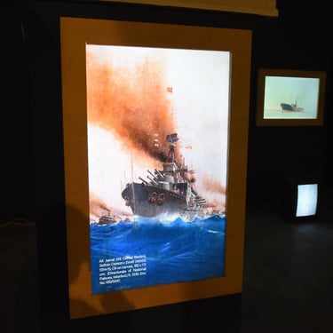 Not all painters of the Marine School of Beirut and/or Tripoli were trained in the military, naval, and engineering schools of Istanbul. Those who were self-taught, or schooled in Beirut, or in the capitals of other vilayets, they adopted pictorial conventions common at the time throughout the Empire. This exhibition does not only wish to display a constructed art historical category, and a partially lost art historical phenomenon, but also to show what has survived from it. Using the metaphor of the sea, we can discern what remains at the surface – that is, the few paintings that are still available in various local collections – and suggest what lies at the bottom, that is, paintings that once were part of the tradition but have been lost or destroyed or are not currently available in Lebanon. For the latter we rely on digital files.