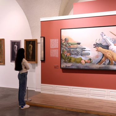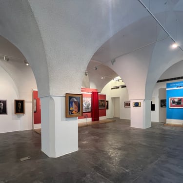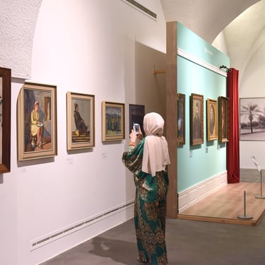 The Open Walls exhibition aims to foster the cultivation of knowledge about art by filling in “gaps” and enabling a more comprehensive and flexible representation of the art historical narrative through an ever-changing open walls setup. Artworks from various collections or ages are invited to be exhibited in close proximity to AUB's permanent collection. With the colors or codes of display of these open walls changing each time to accommodate pieces from different collectors, we aim to offer new perspectives and interpretations on Arab art, while also illuminating the historical, current, and aspirational roles of AUB in advancing knowledge about art and culture from the region. Most importantly, we would like to draw attention to the imperative need for dialogue and collaboration between AUB and other local, regional, and global cultural institutions, collections, artists, and foundations.